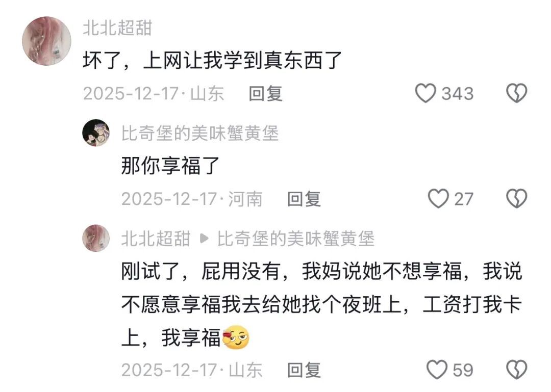 而现在,在互联网的玩梗下,”那你享福了”像是用一个标准答案去套所有题,比起安慰更像是一种“高情商”下的敷衍。